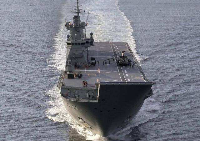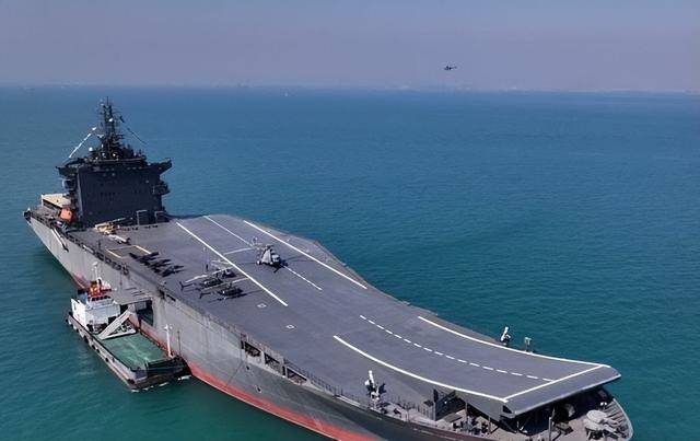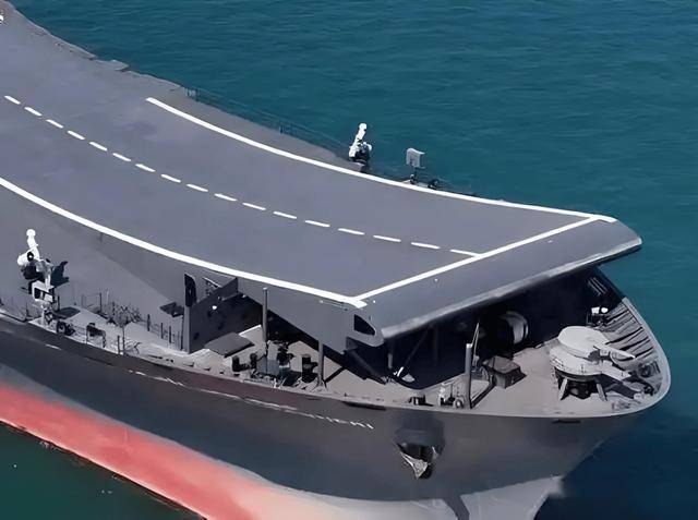 ,花两年时间改造成“航母”,改造思路很简单,保留货船的主体结构,直接在甲板上加装滑跃起飞段和斜角甲板。舰岛还是原来的上层建筑,只是刷了层新漆,这种操作速度快、成本低,让它成了世界上最便宜的“航母”。