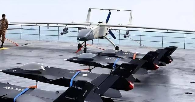 最尴尬的是舰载机,除了几架贝尔直升机,甲板上摆的全是无人机,那款号称隐身的小型无人机,跟人站在一起显得格外迷你,网友调侃“航模发烧友都能造”。