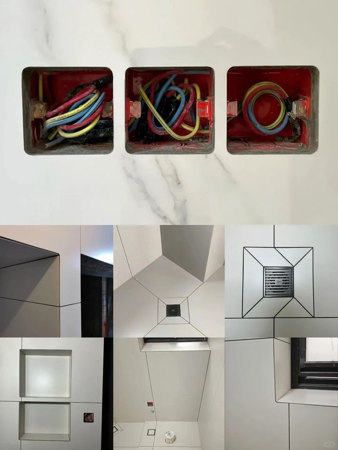 坡度设计:地漏处做“回字形”排水坡,坡度≥1%,确保排水顺畅不积水。避坑提醒:水管接头需用热熔工艺连接,严禁使用胶水粘贴;卫生间湿区水管需包裹保温棉,防止冷凝水滴落。