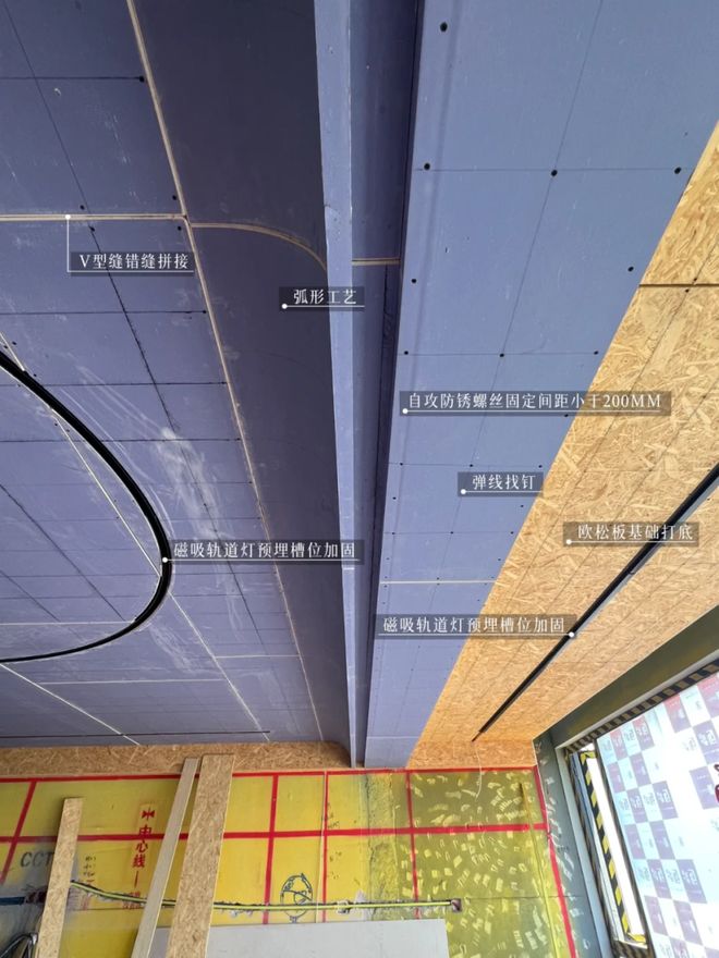 龙骨选择:轻钢龙骨比木龙骨更防潮、防火,主龙骨间距≤80cm,副龙骨间距≤40cm。