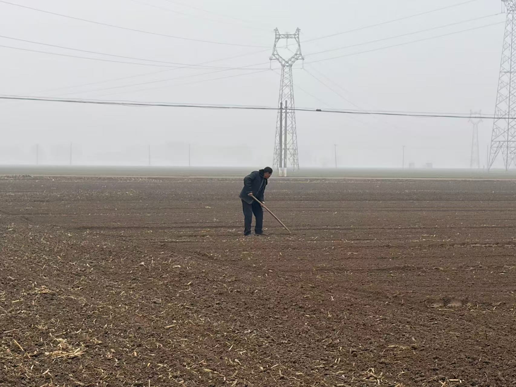 10月31日,一位老人正在金沙河合作社种植基地平整土地(央广网发 张胜坡摄)